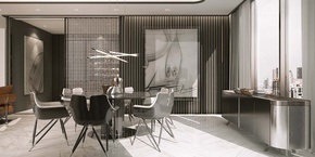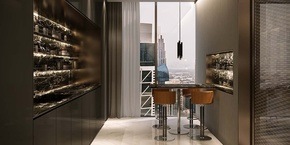 Marble flooring and skirting Paint and quartz walls Gypsum ceiling finished with paint Silestone high quality quartz counter top Lacquered paint cabinets Fridge, Oven, Hob, Hood, Microwave, Dishwasher, Washing Machine, Beverage Cooler Miele, Bosch Premium Line or Equivalent
